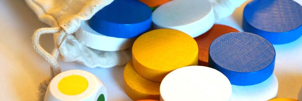 • 30 Spielsteine aus Holz (in sechs verschiedenen Farben)